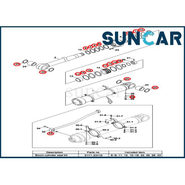 31Y1-33110 31Y133110 Arm Cylinder Seal Kit Fits For R320LC-9 R330LC-9A Models HYUNDAI Images |